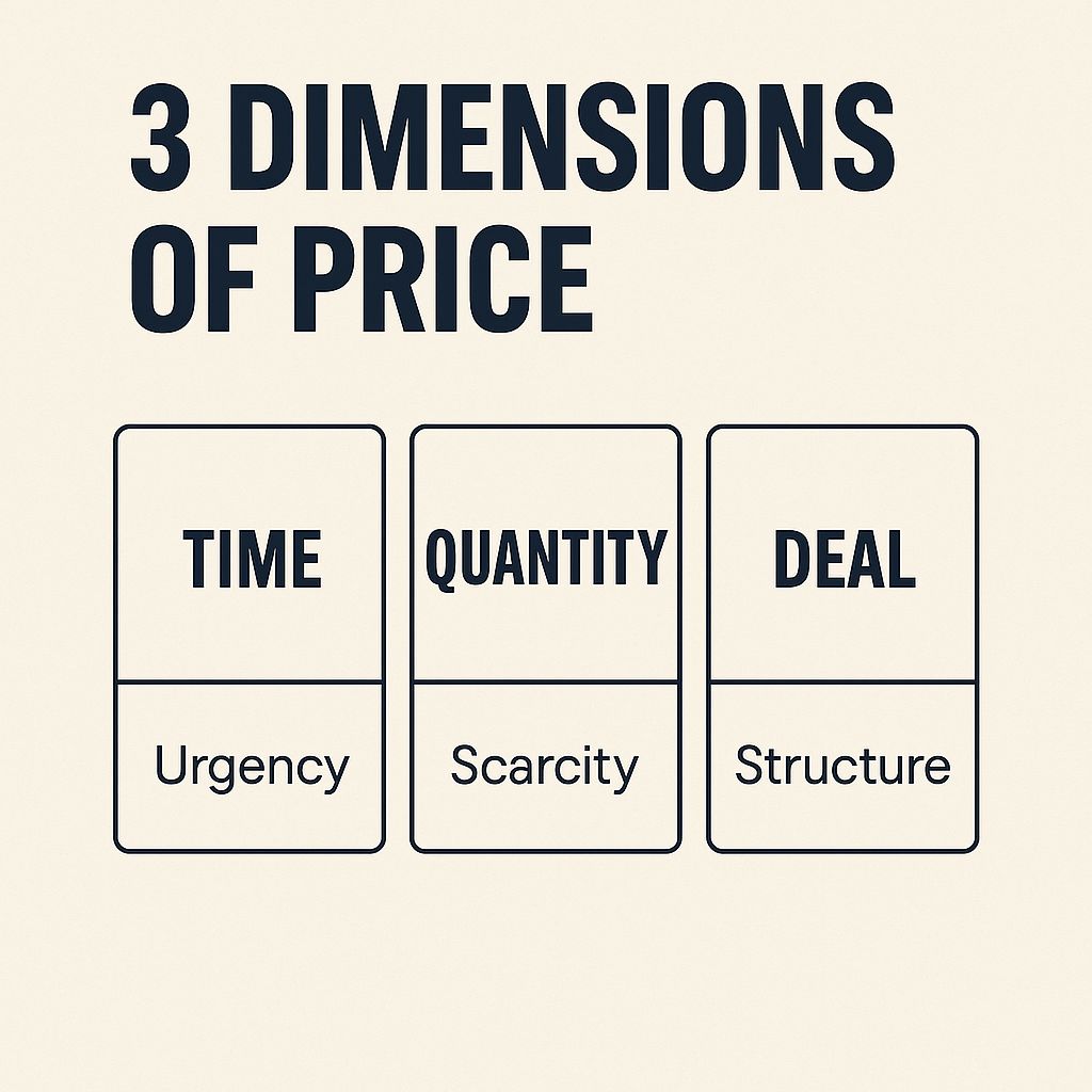 When I first heard this framework â that price actually has three dimensions: time, quantity, and deal â it completely reframed how I thought about value.
