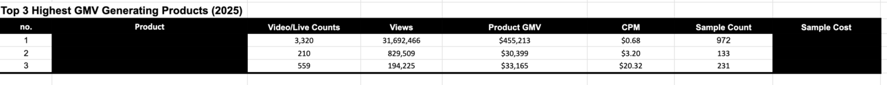 In this analysis, the #1 video drove $29K in GMV. It had just over 463K views — and featured the brand’s hero product.